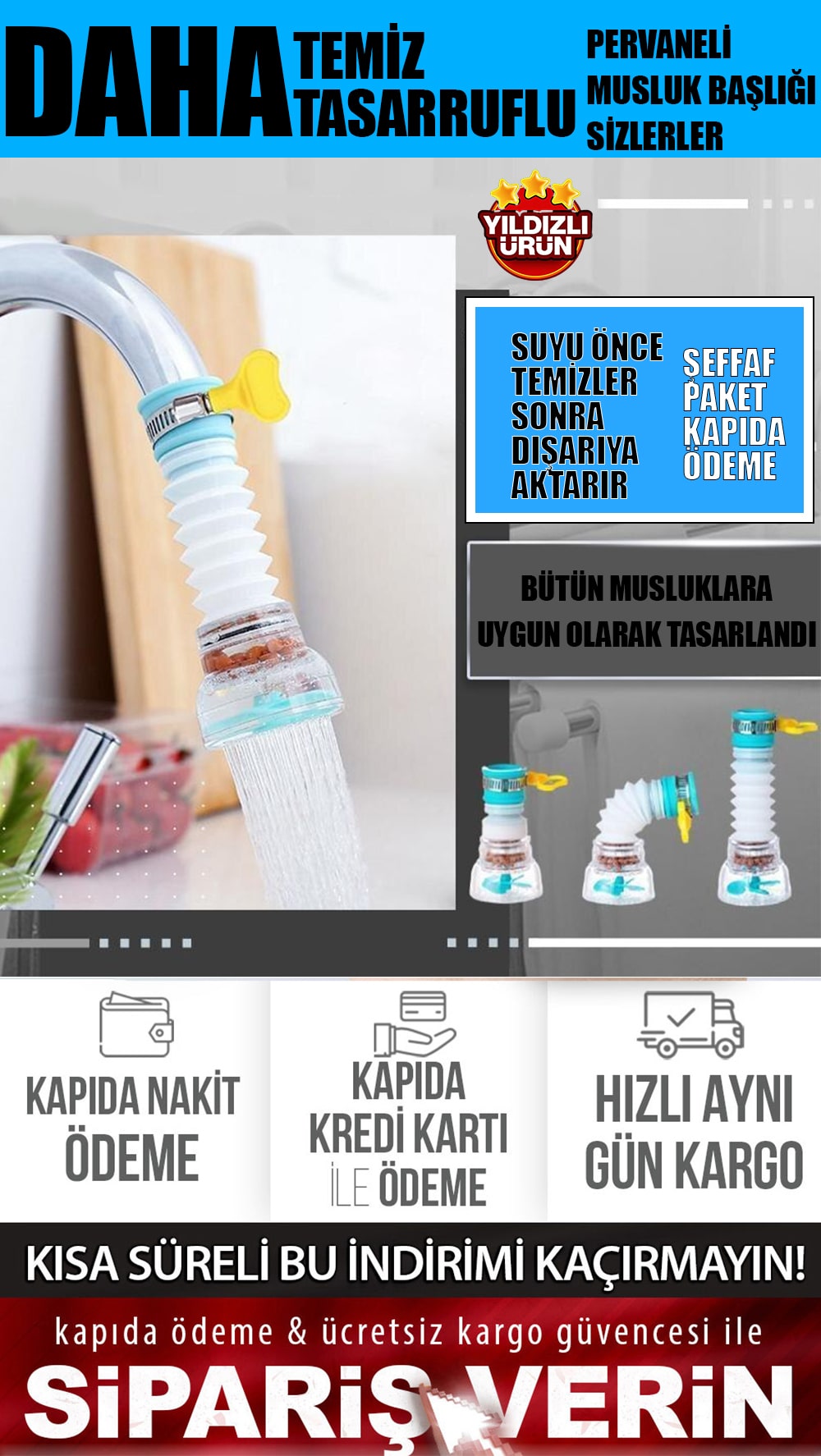 3 Adet PERVANELİ MUSLUK BAŞLIĞI -